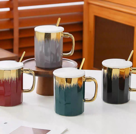AA0024 TAZA CERAMICA X 4 APILABLE NEGRO CON DORADO 2025080800249