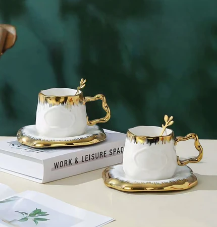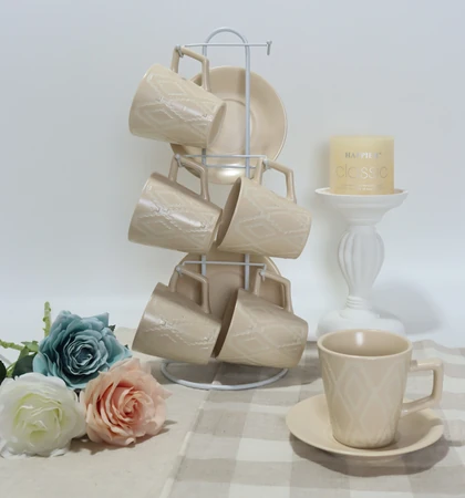 AA0496 SET DE TAZA CAFE X 6 CON 6 PLATOS ESTILO METALIZADO 2025080804964