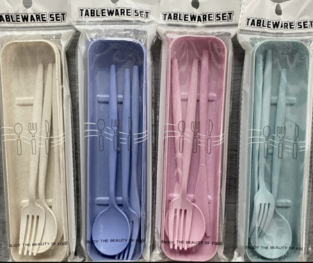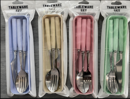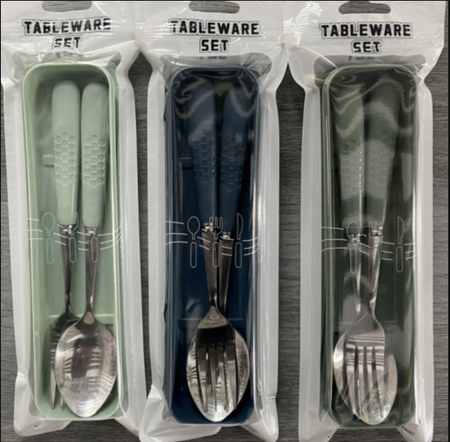 AA1527 SET CUBIERTOS DE VIAJE MANGO PLASTICO HEXAGONAL MANCHITAS