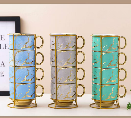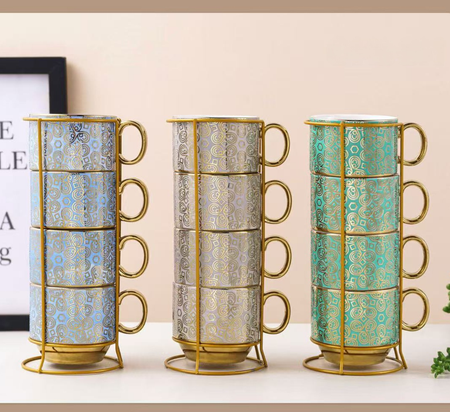 AA0703 SET DE CAFE X 4 TAZAS CERAMICA APILABLE