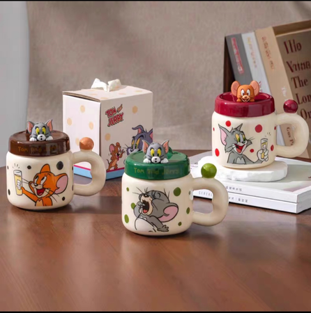 AA0003 TAZA CERAMICA TAPA ESPEJO GATO Y RATON
