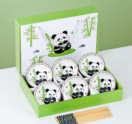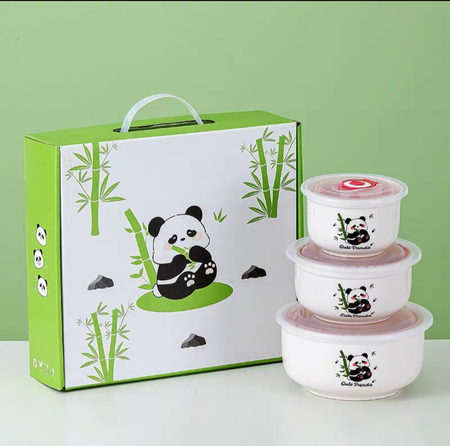 AA0528 SET DE BOWLES CERAMICA CON TAPA X 3 PANDA