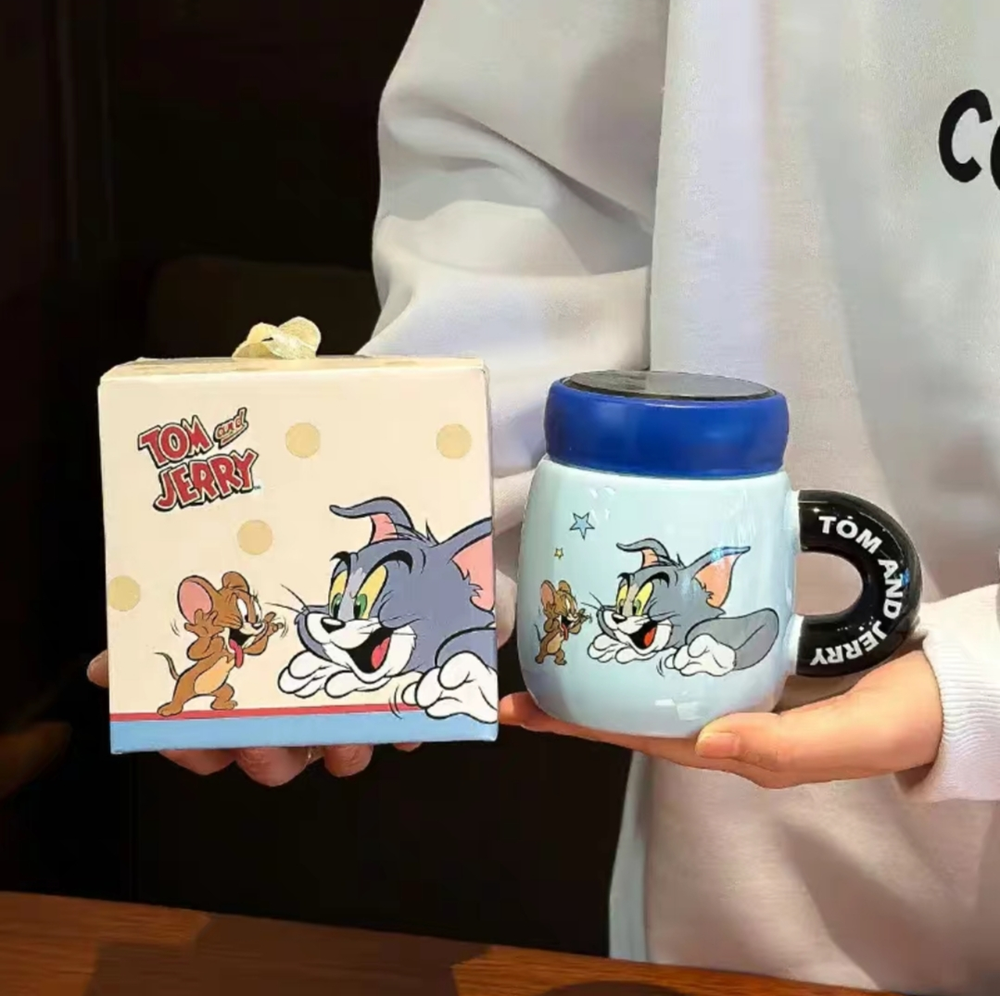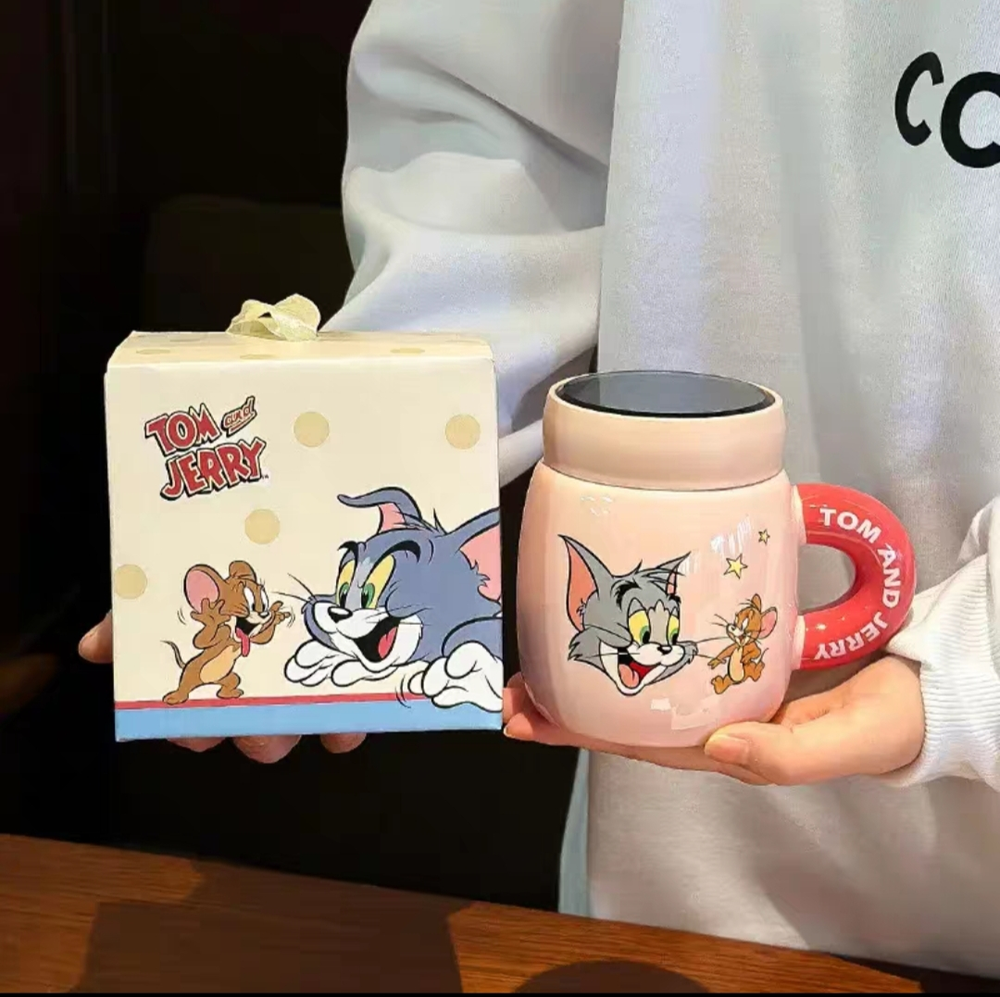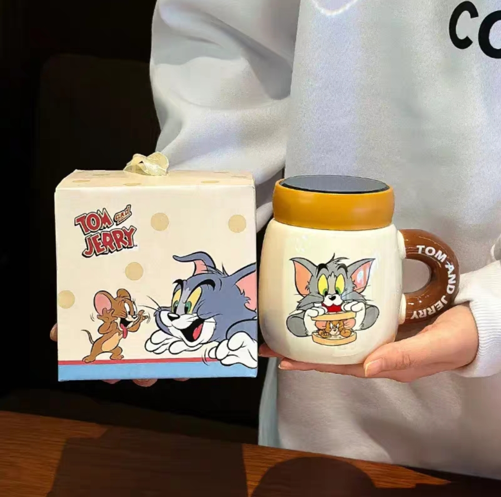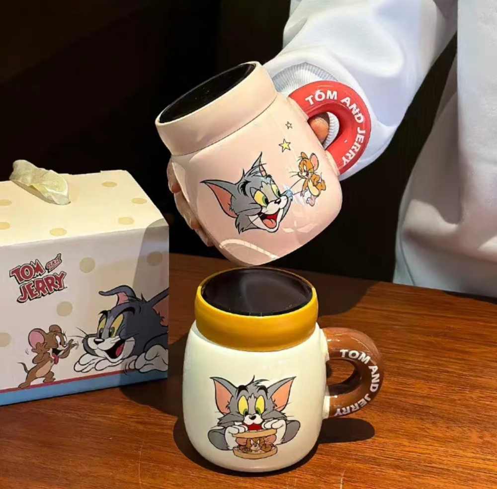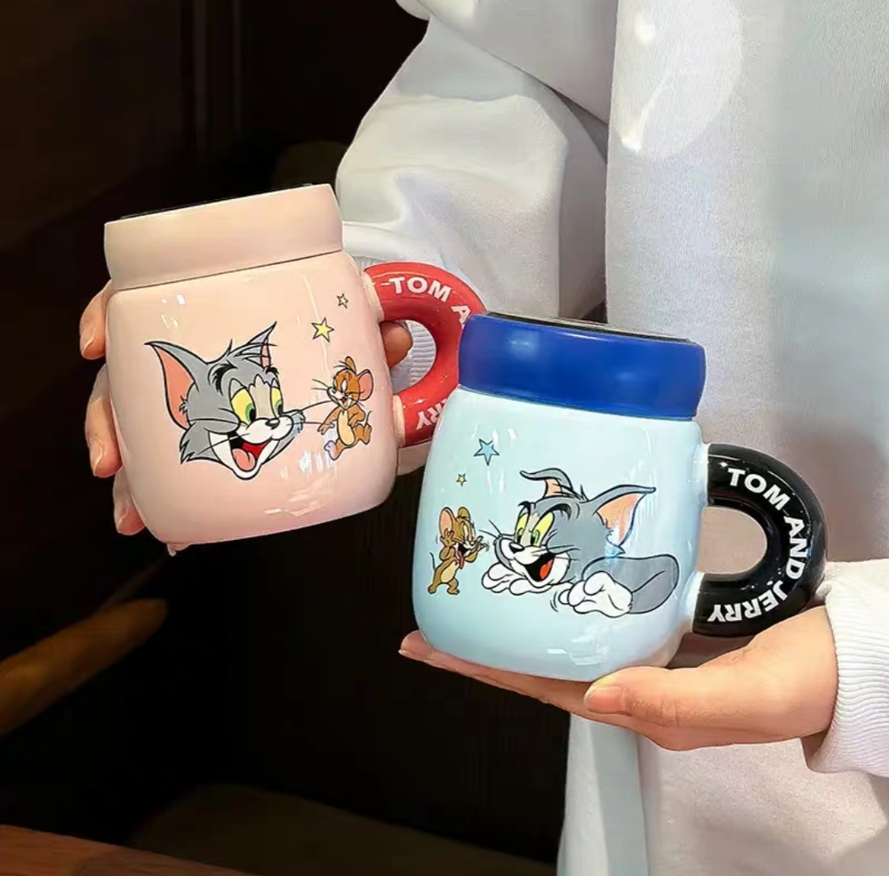 AA0003 TAZA CERAMICA TAPA ESPEJO GATO Y RATON
