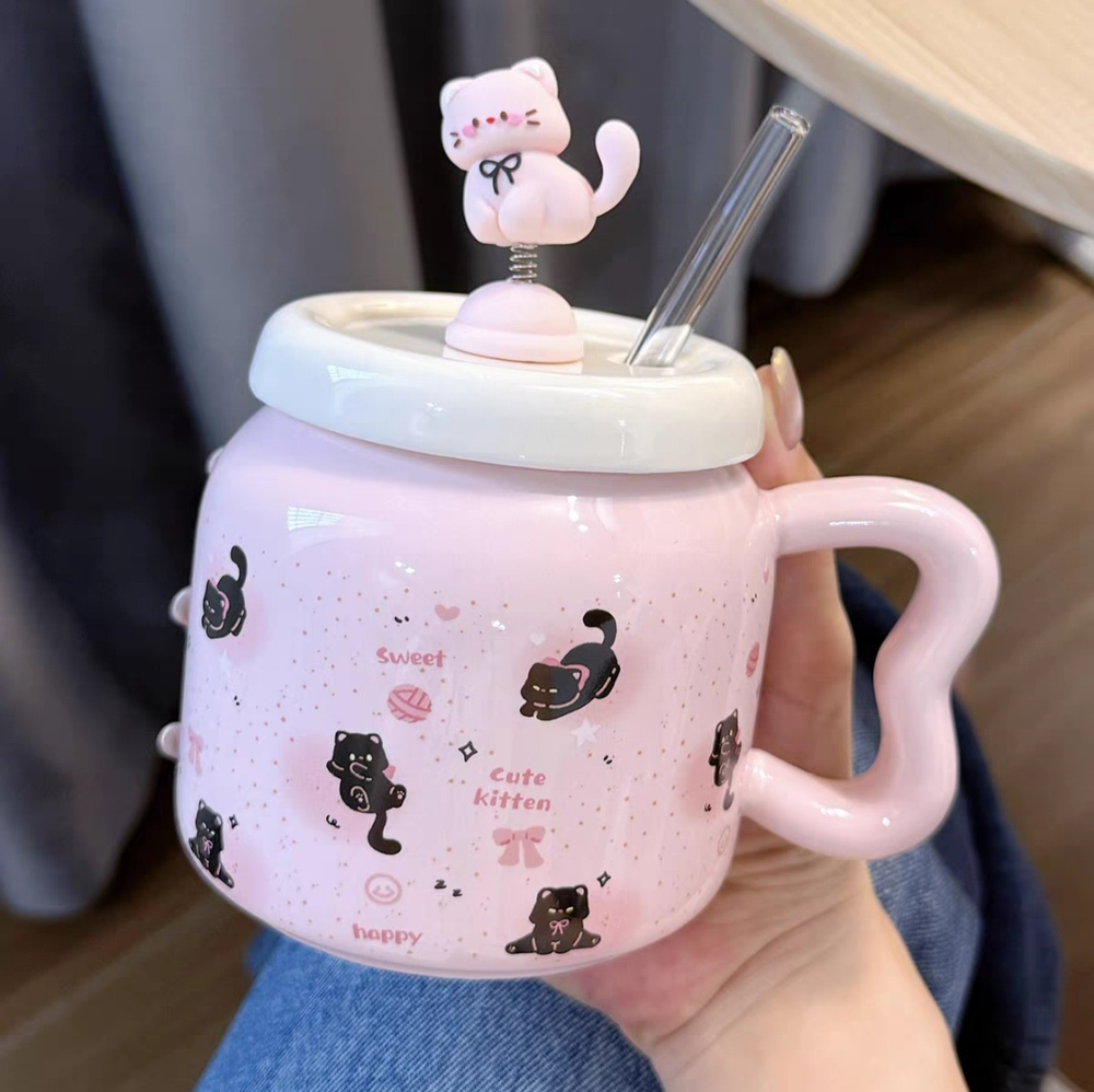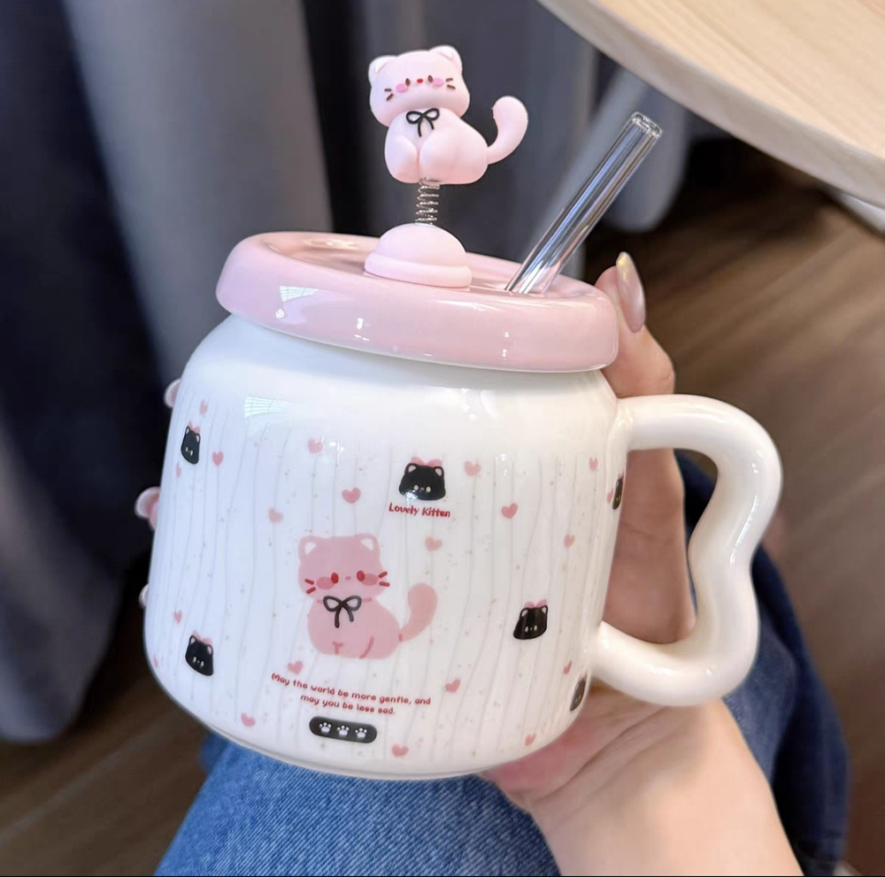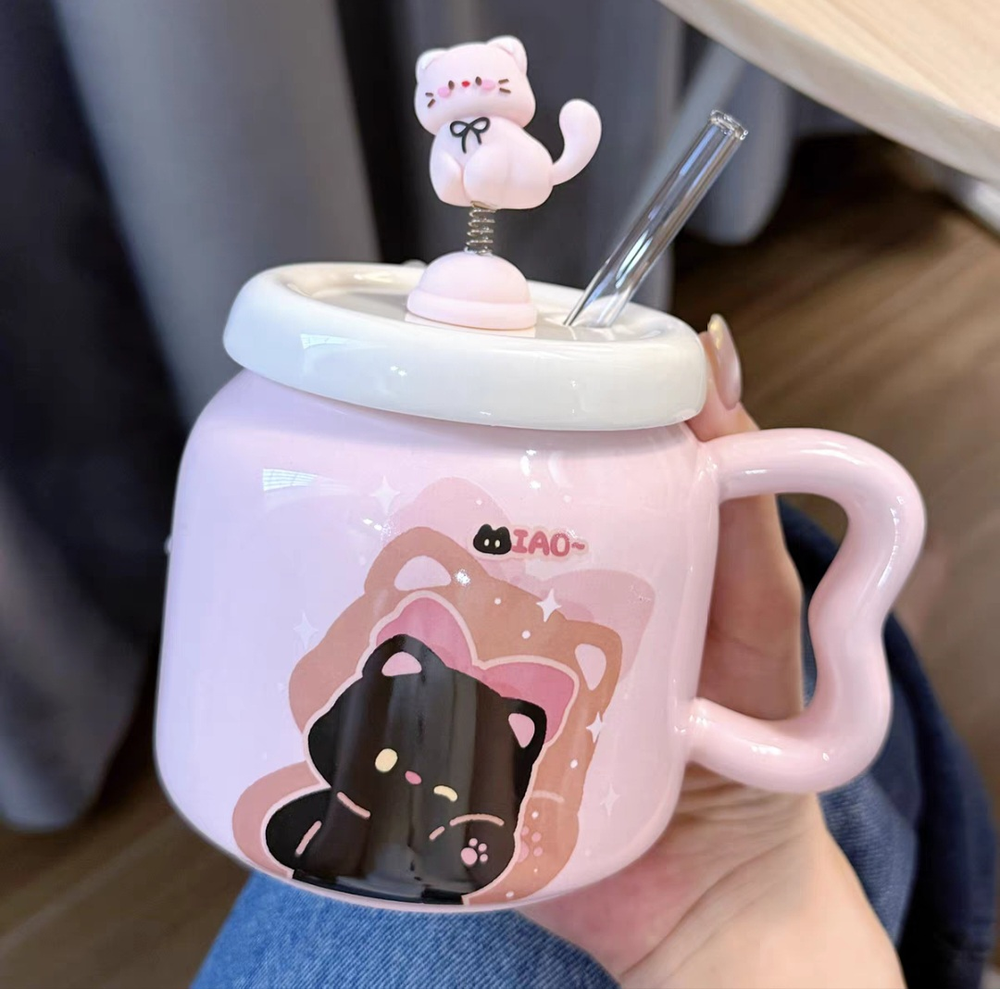 AA0500 TAZA CERAMICA GATO ROSA