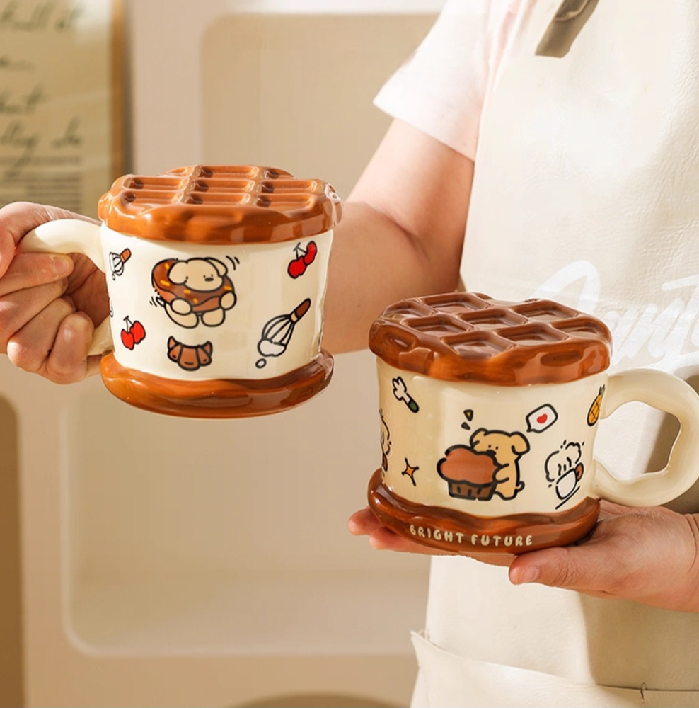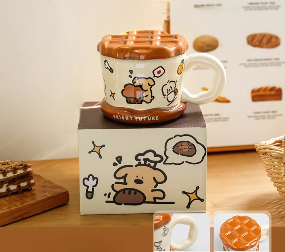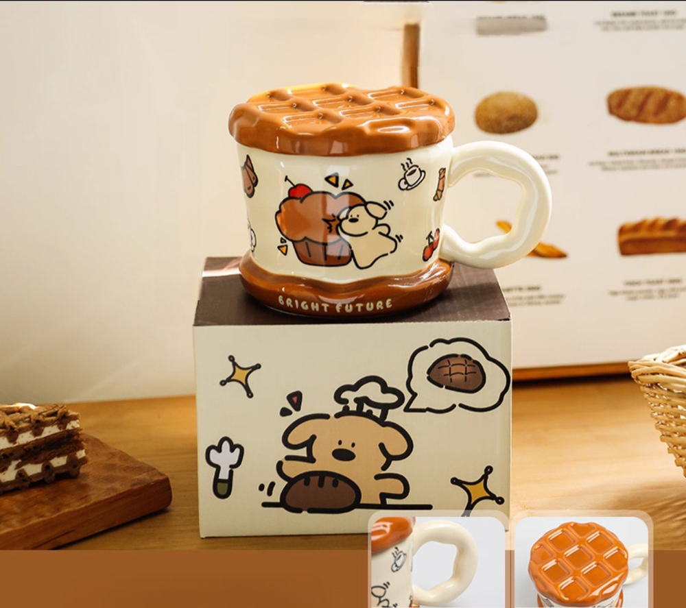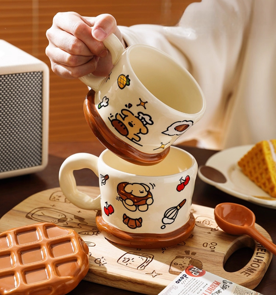 AA0532 TAZA CERAMICA PERROS Y WAFLES