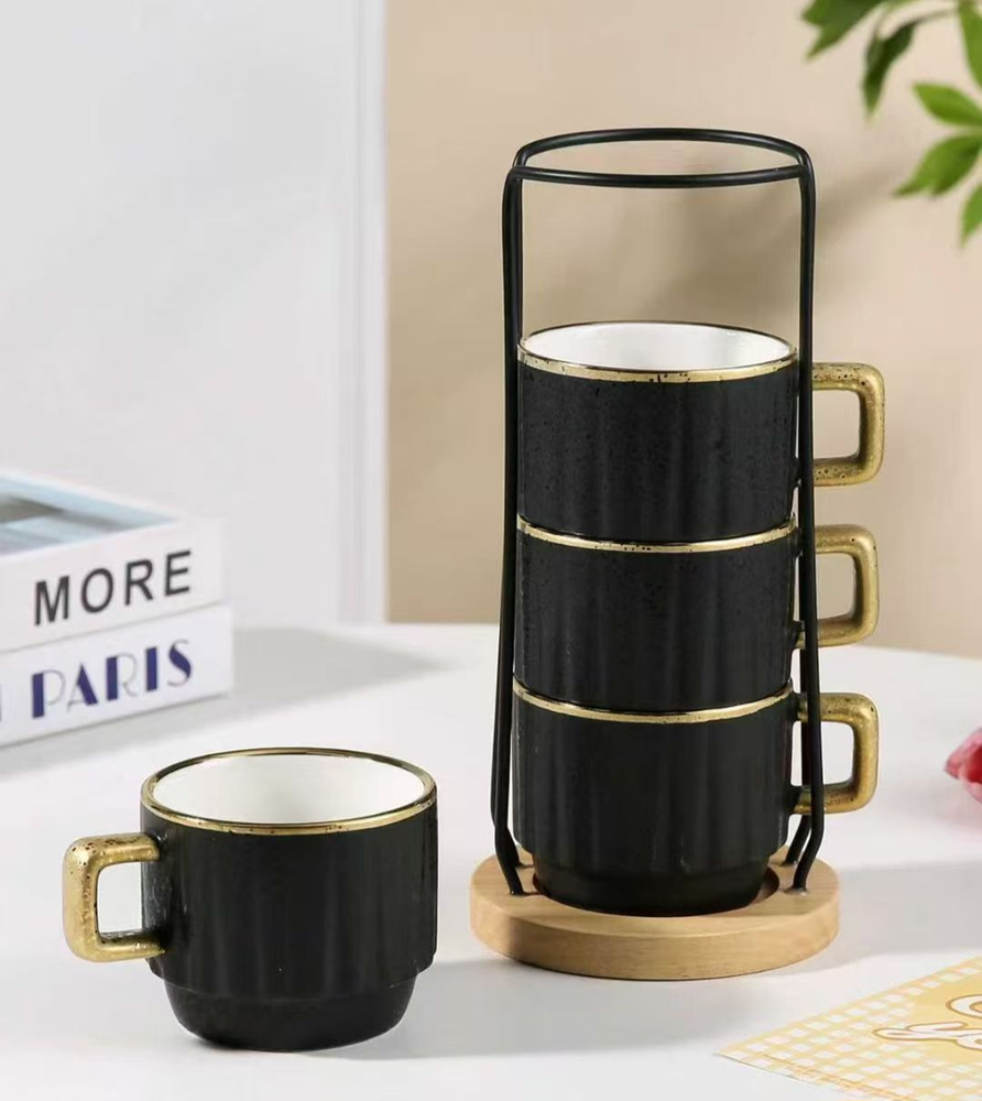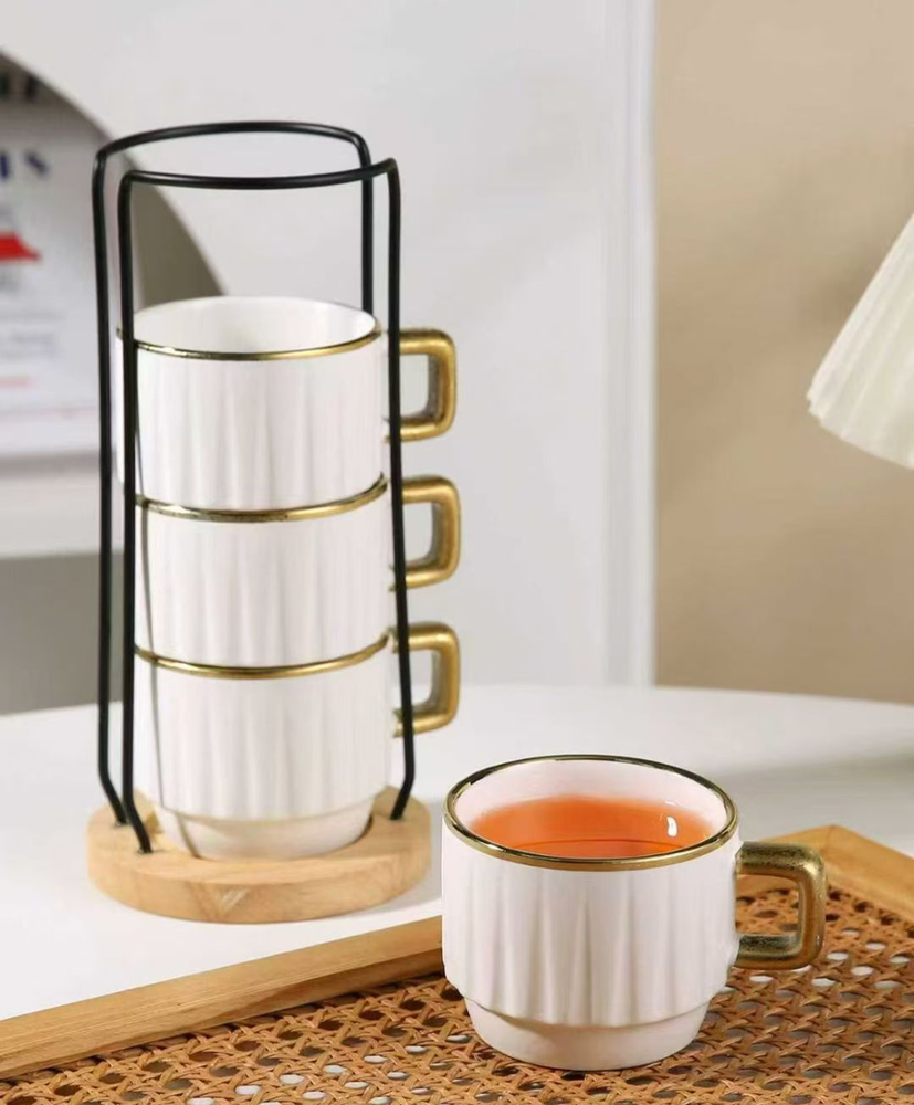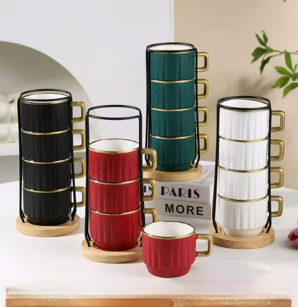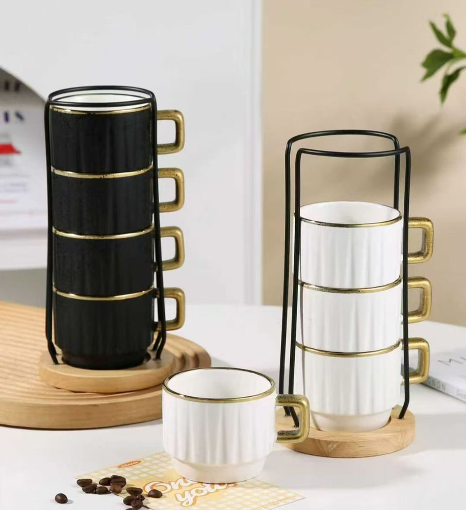 AA0606 TAZA CERAMICA APILABLE CON PORTA TAZAS