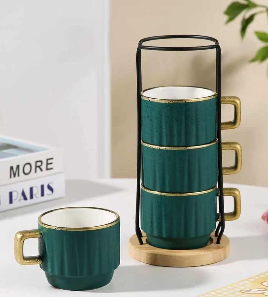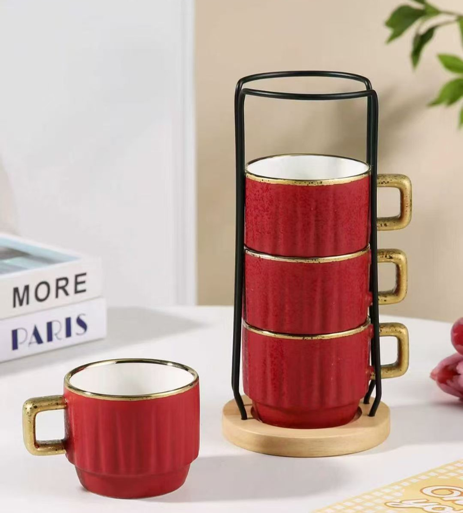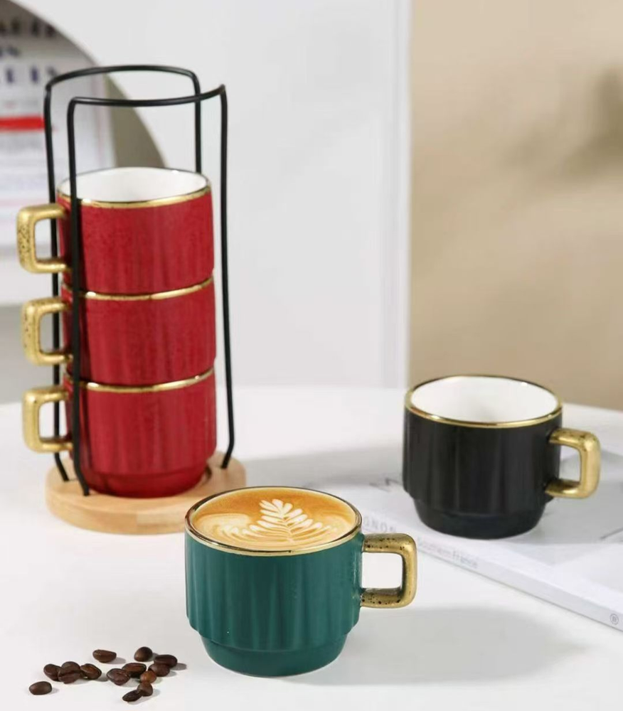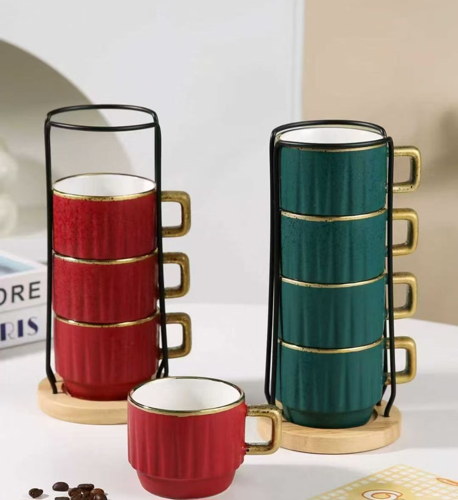 AA0606 TAZA CERAMICA APILABLE CON PORTA TAZAS