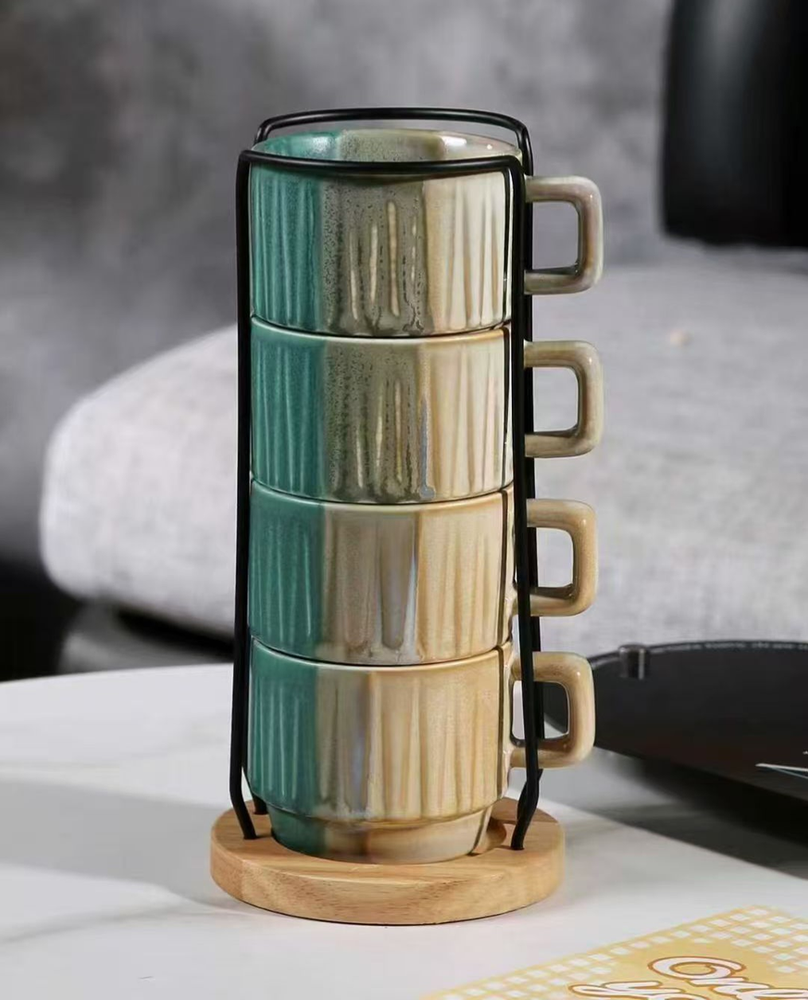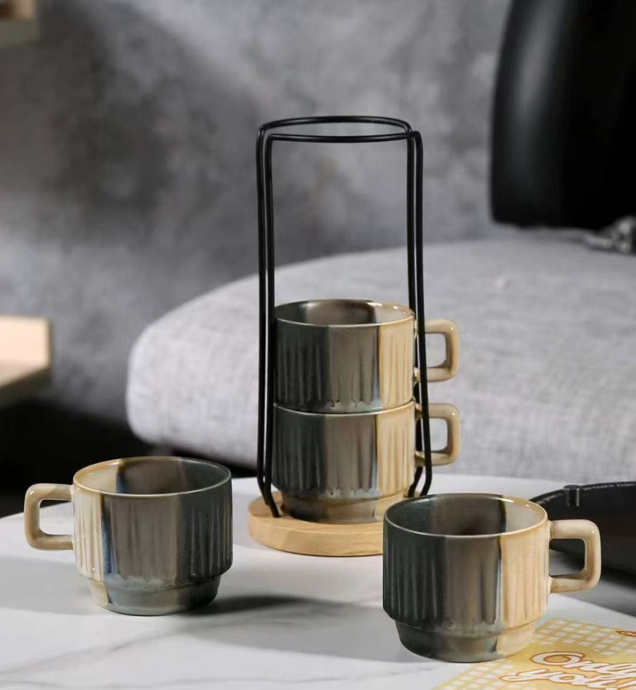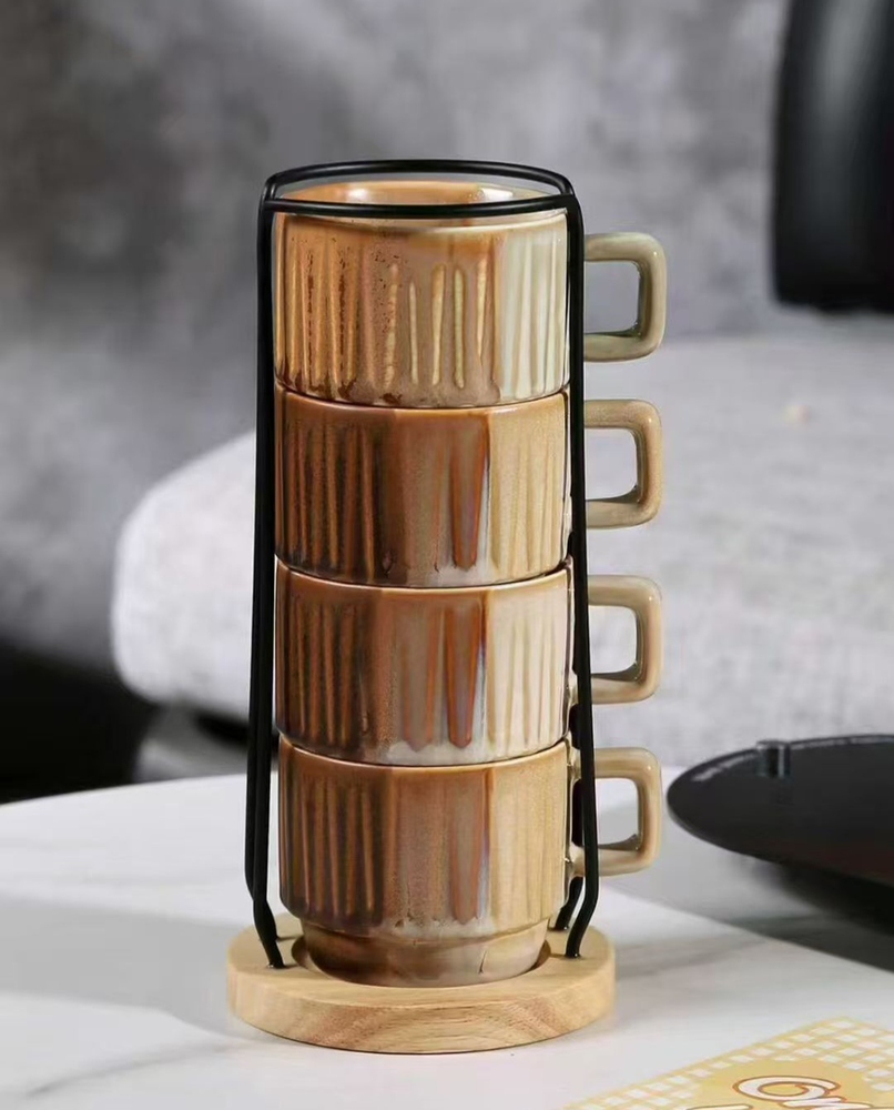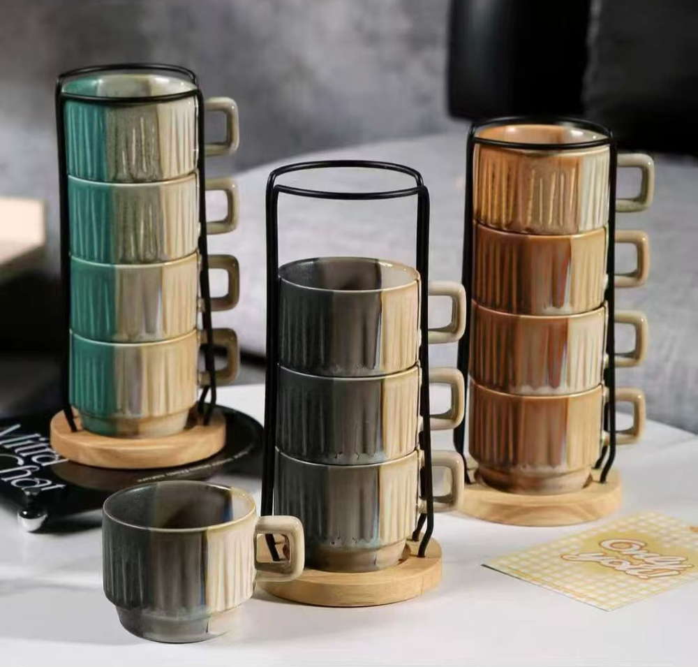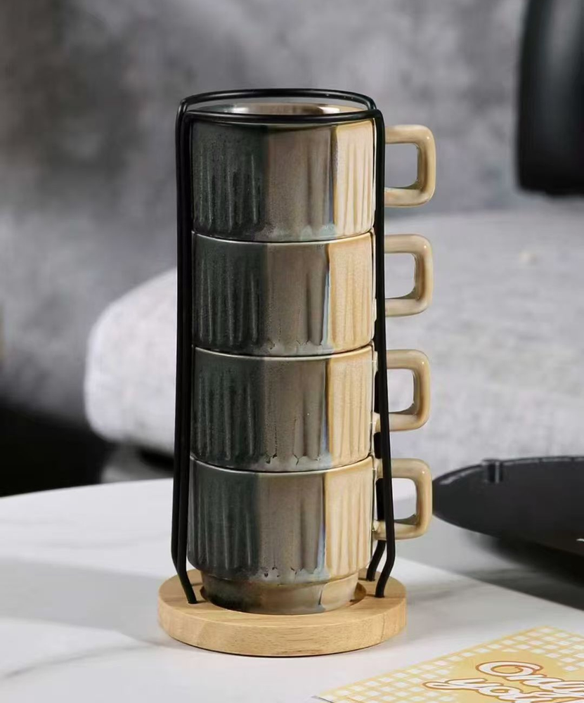 AA0607 TAZA CERAMICA APILABLE CON PORTA TAZAS
