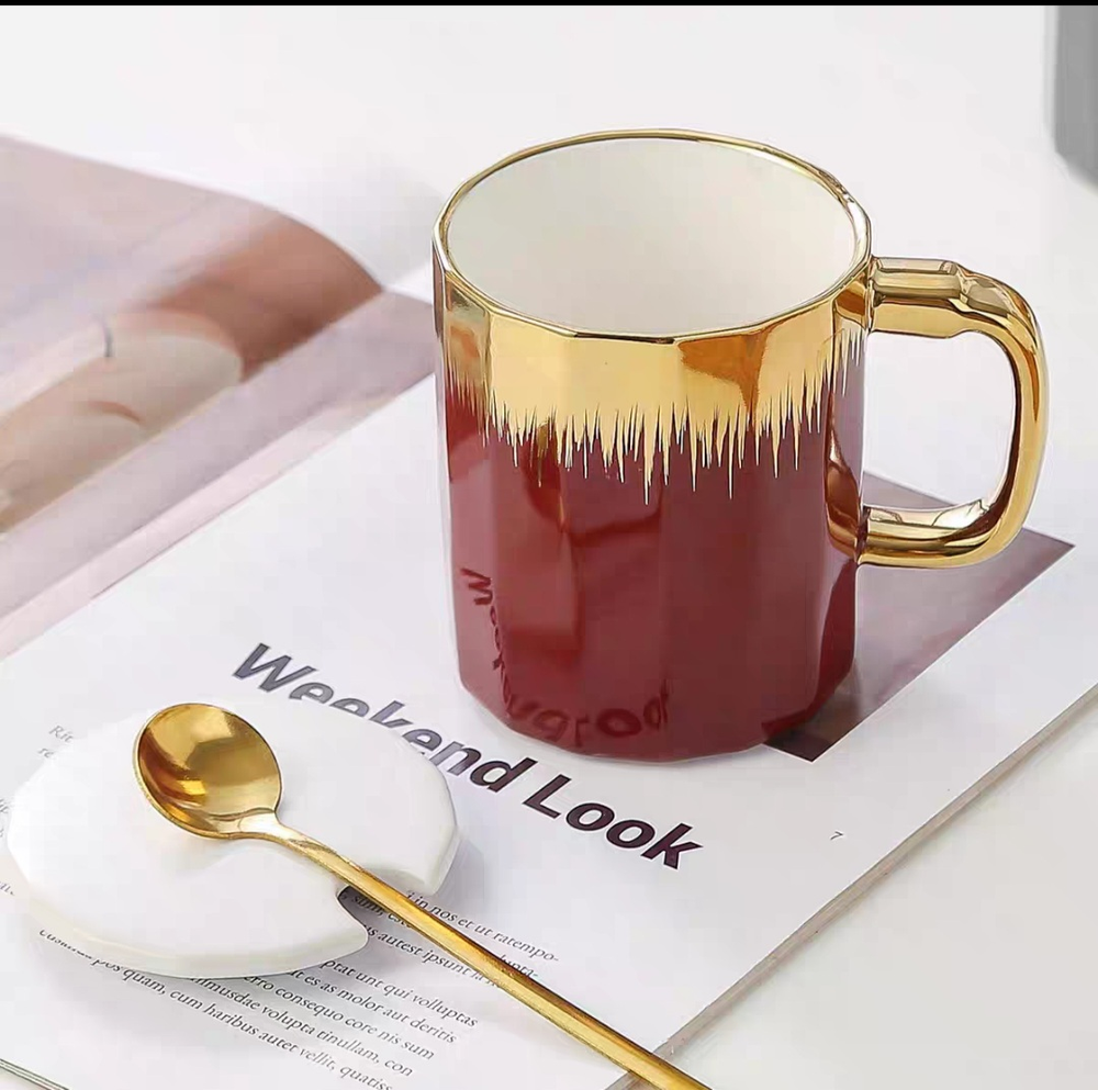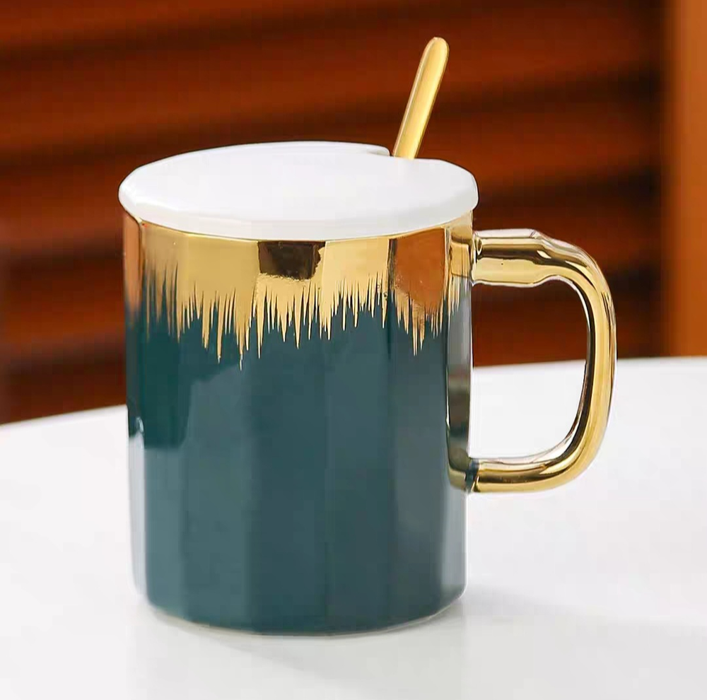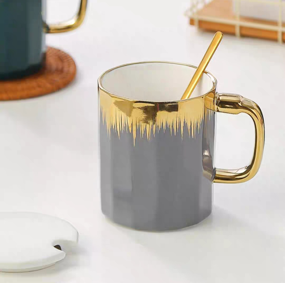 AA0619 TAZA CERAMICA DE COLORES CON DORADO