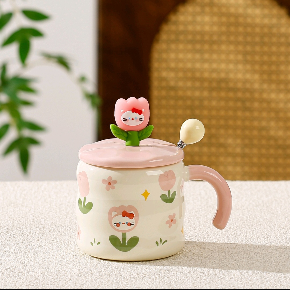 AA0659 TAZA CERAMICA GATO TULIPAN