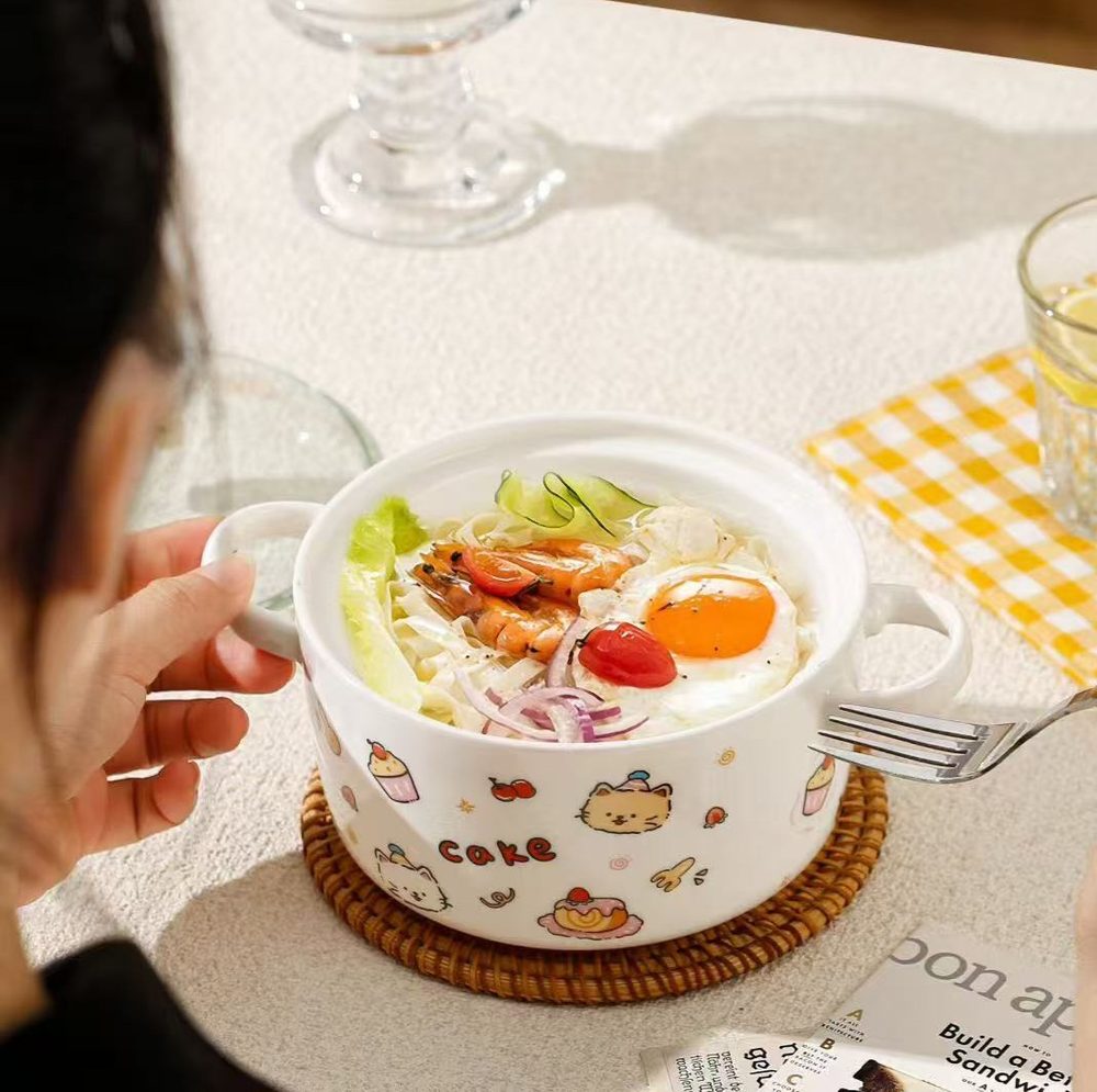 AA0704 BOWL CERAMICA GRANDE CON TAPA DE VIDRIO GATOS
