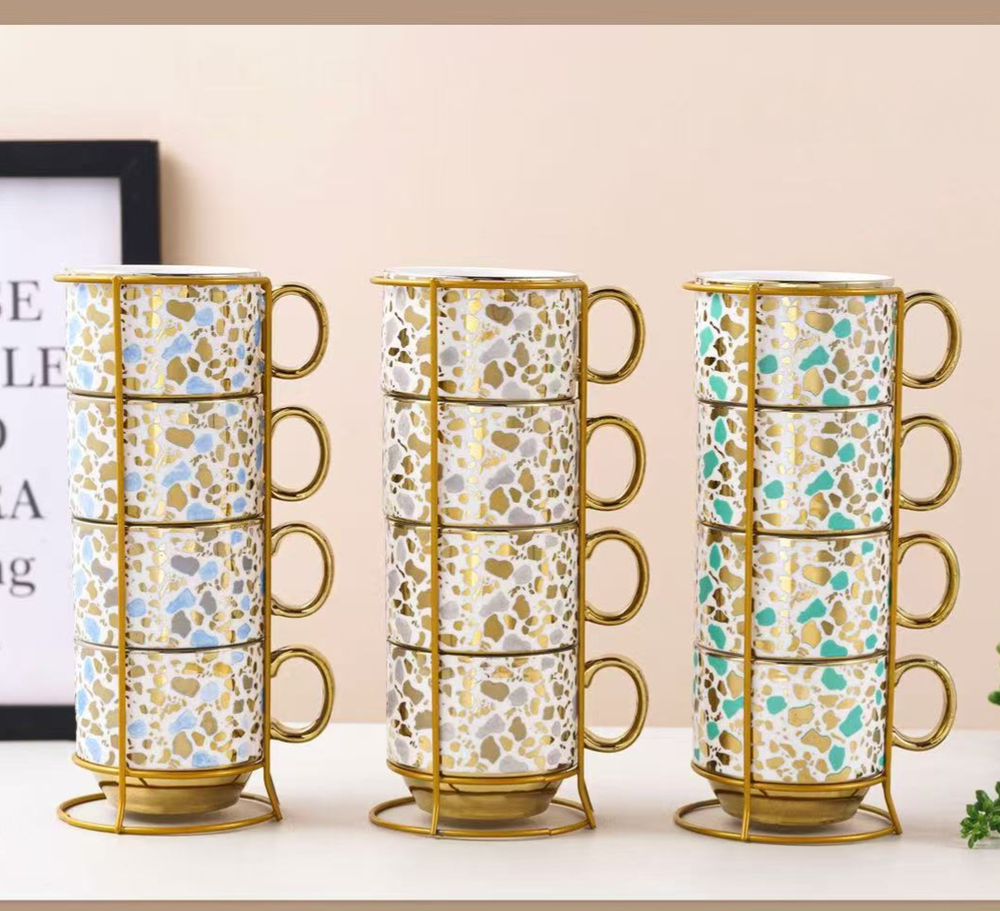 AA0702 SET DE CAFE X 4 TAZAS CERAMICA APILABLE