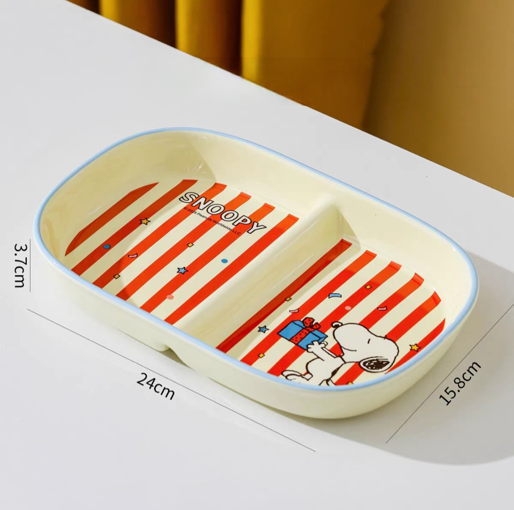 AA0725 PLATO CERAMICA CON DIVICIONES PERRITOS CON RAYAS ROJOS