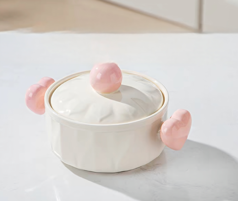 AA1000 BOWL CON MANEJAS DE CORAZON Y TAPA DE VIDRIO