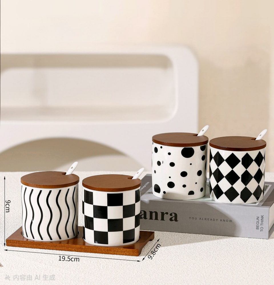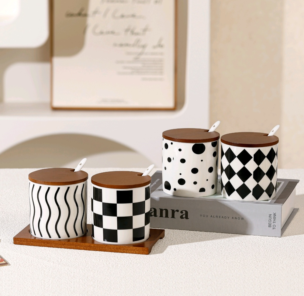 AA0919 SET DE ESPECIEROS CERAMICA X 2 ESTILO PATRON CON TAPAS DE MADERA