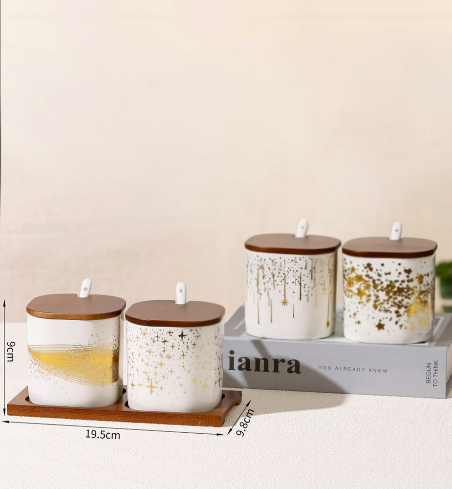 AA0924 SET DE ESPECIEROS CERAMICA X 2 ESILO DORADO CON TAPAS DE MADERA
