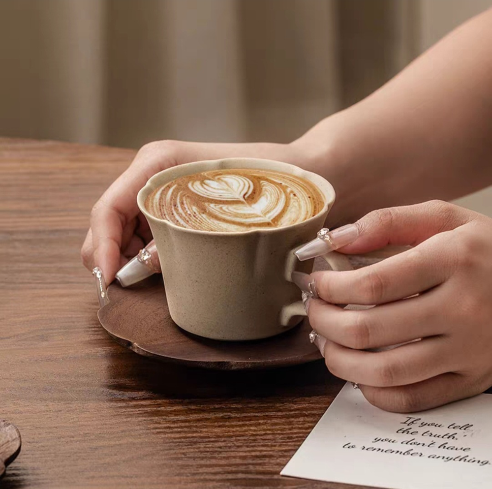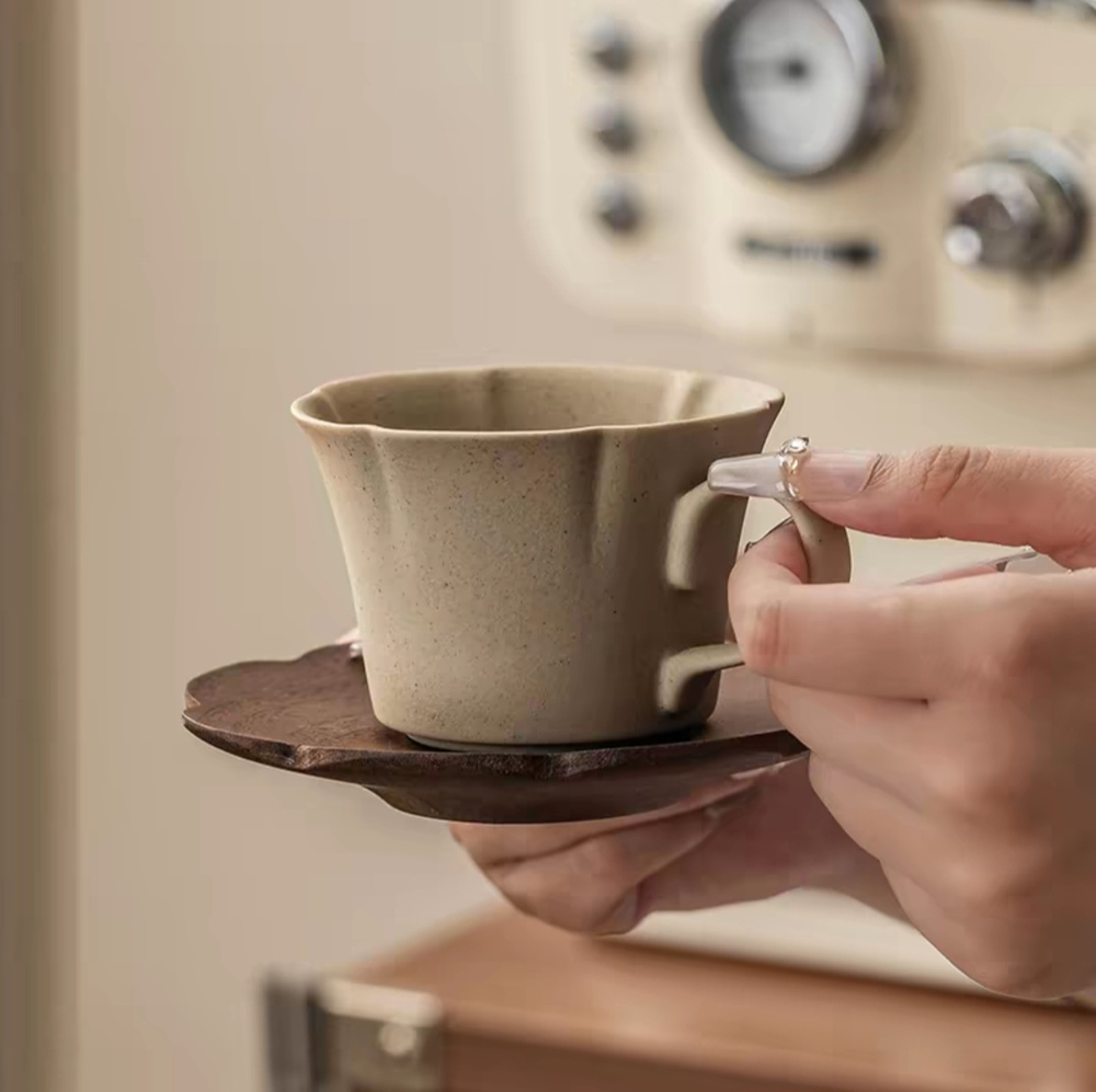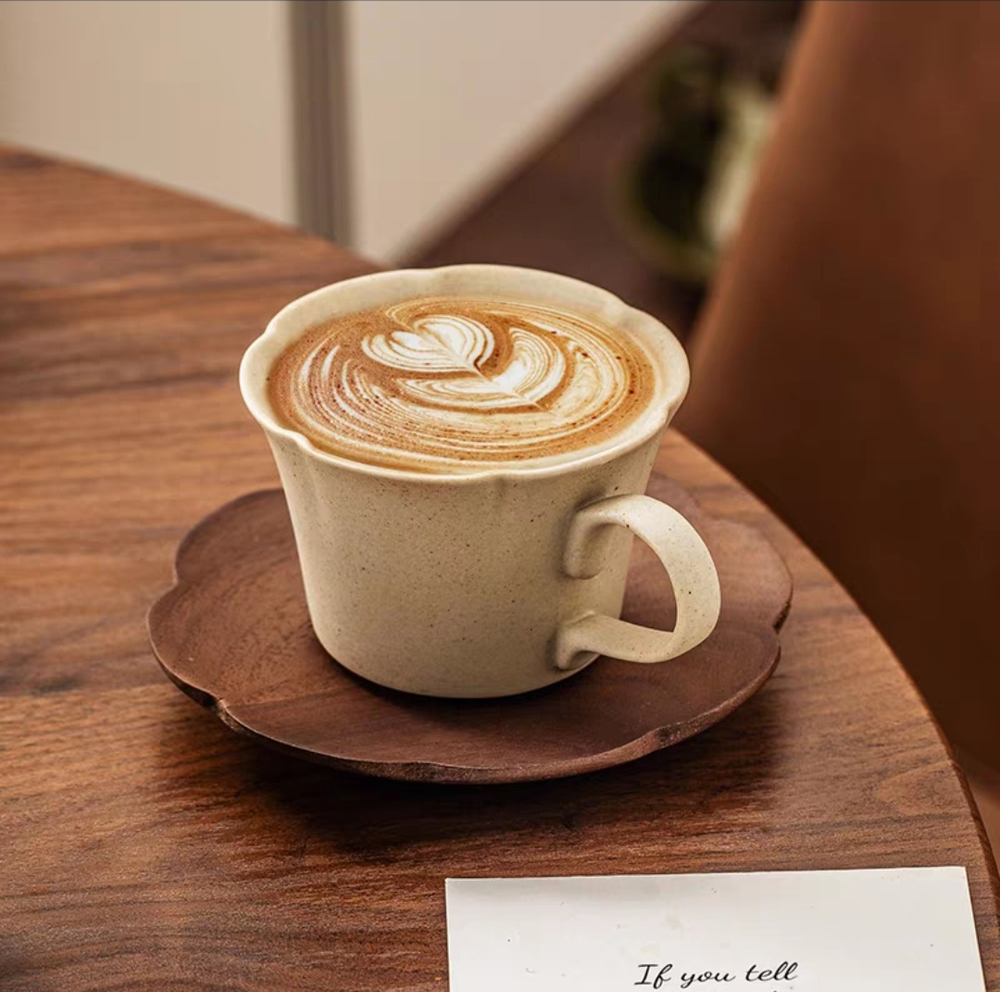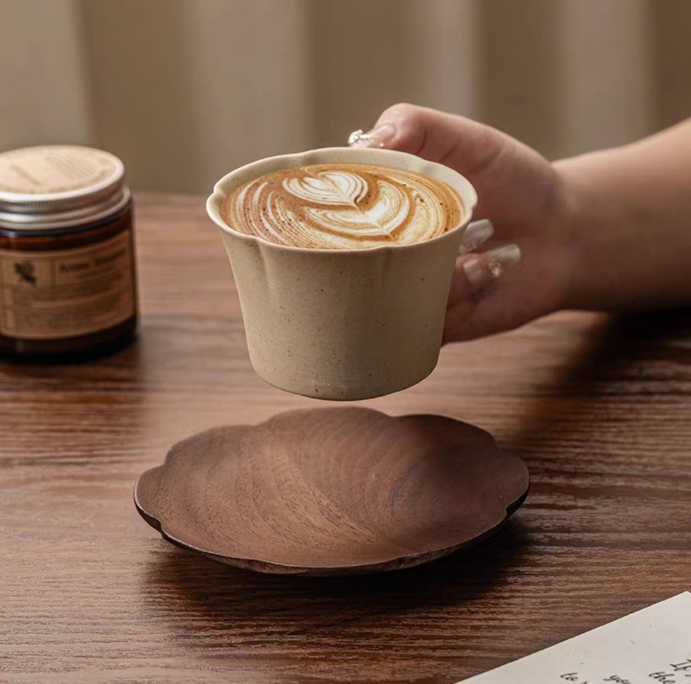 AA0930 TAZA DE CAFE CERAMICA CON PLATO DE MADERA