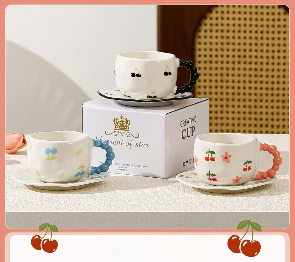 AA1382 TAZA CON PLATO CERAMICA CEREZA
