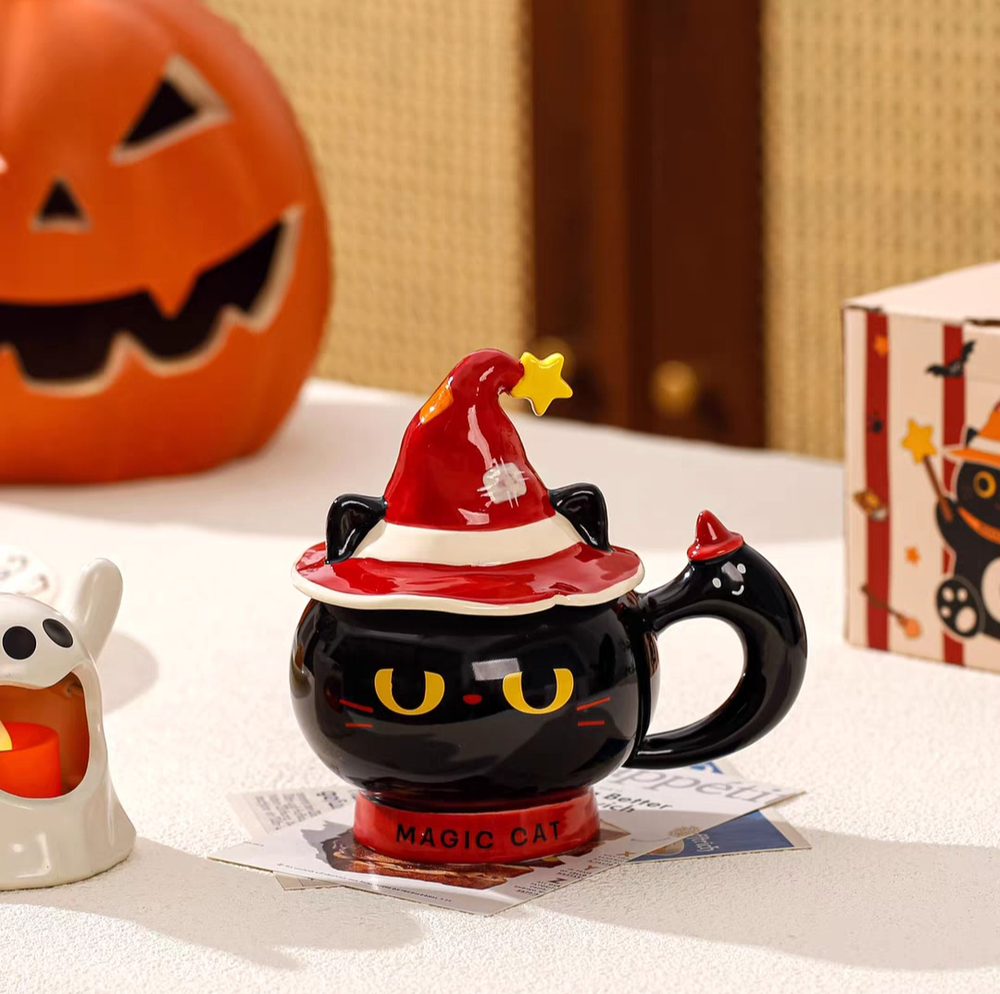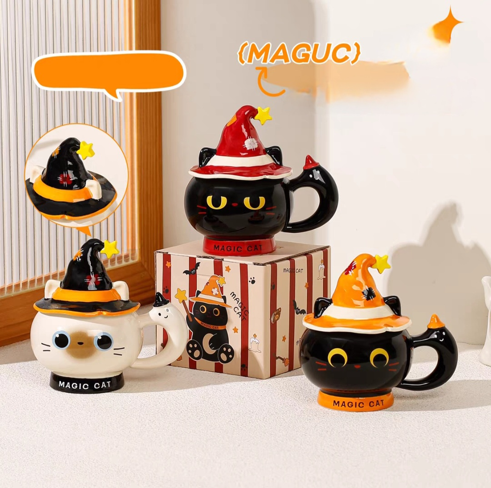 AA1408 TAZA CERAMICA GATO NEGRO CON GORRO