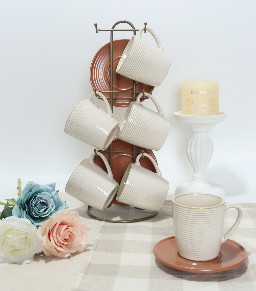 6 TAZAS + 6 PLATOS + PORTA TAZAS
