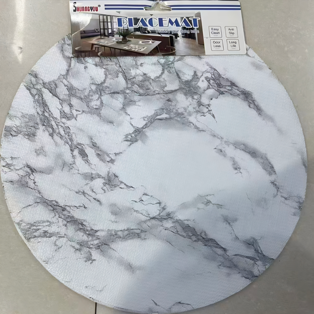 AA1206 INDIVIDUAL REDONDO PLASTICO FINO MARMOL BLANCO