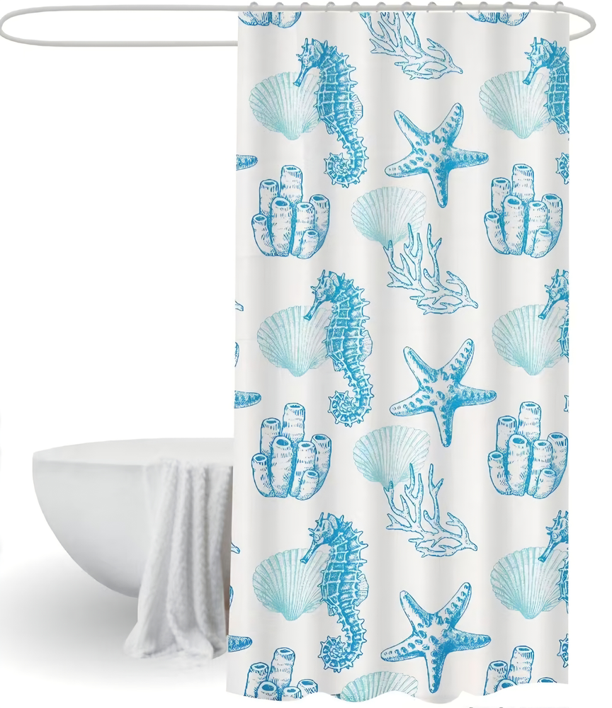 AA3037 CORTINA DE BAÑO TELA TEFLON ANTIHONGO CABALLOS DE MAR