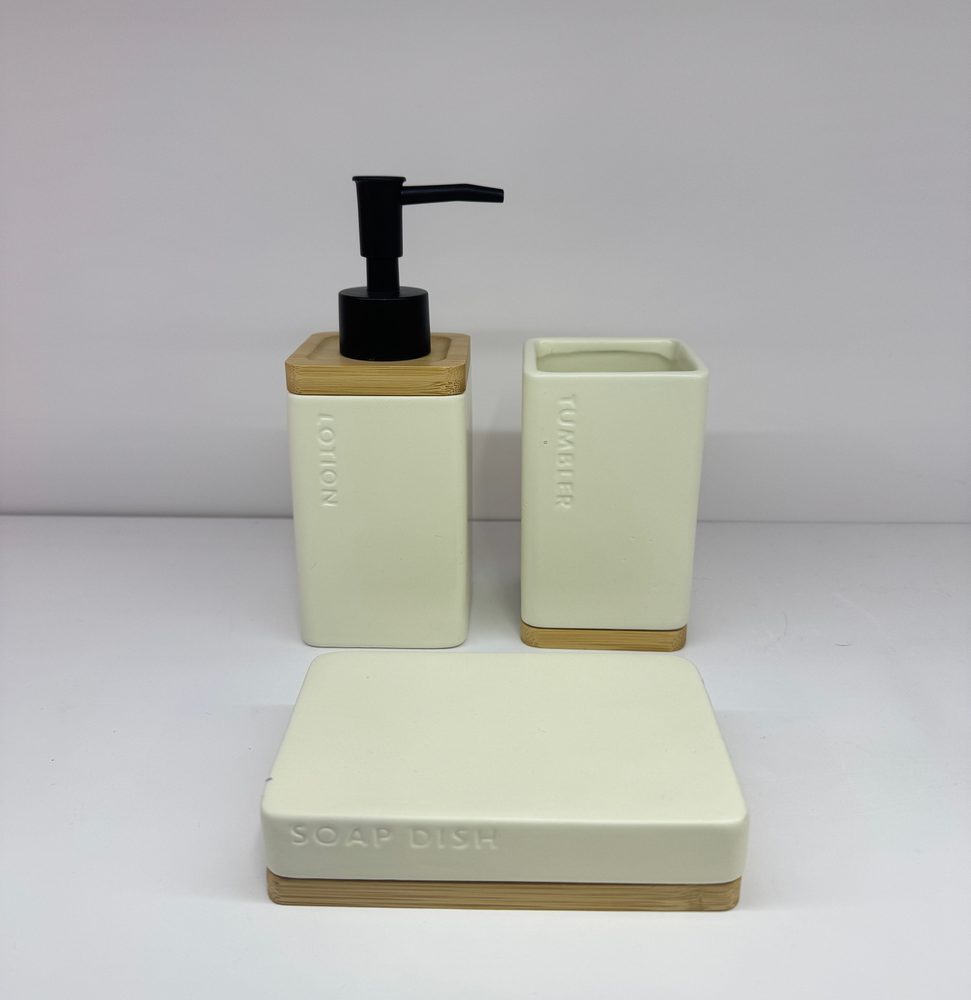 AA1341 SET DE BAÑO CERAMICA 3 PIEZAS BEIGE