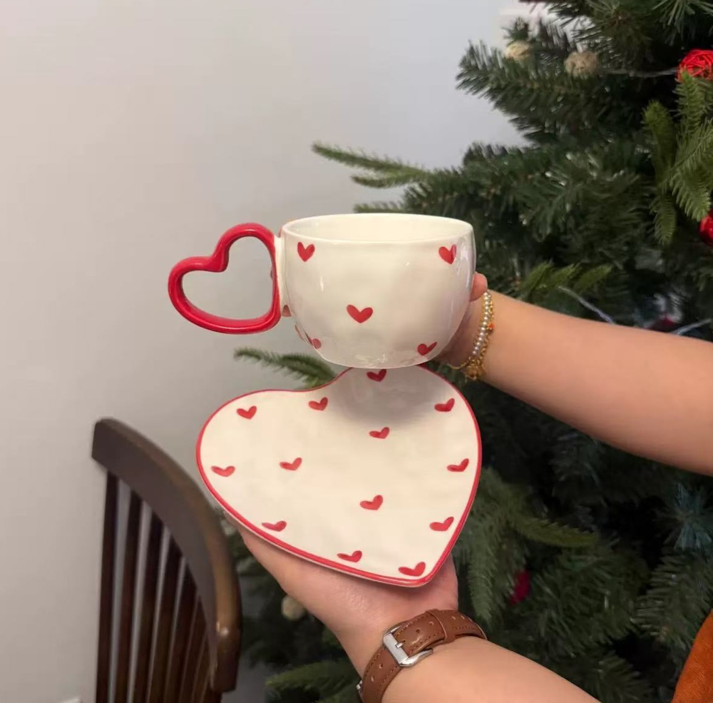 AA1407 TAZA CON PLATO CERAMICA CORAZONES