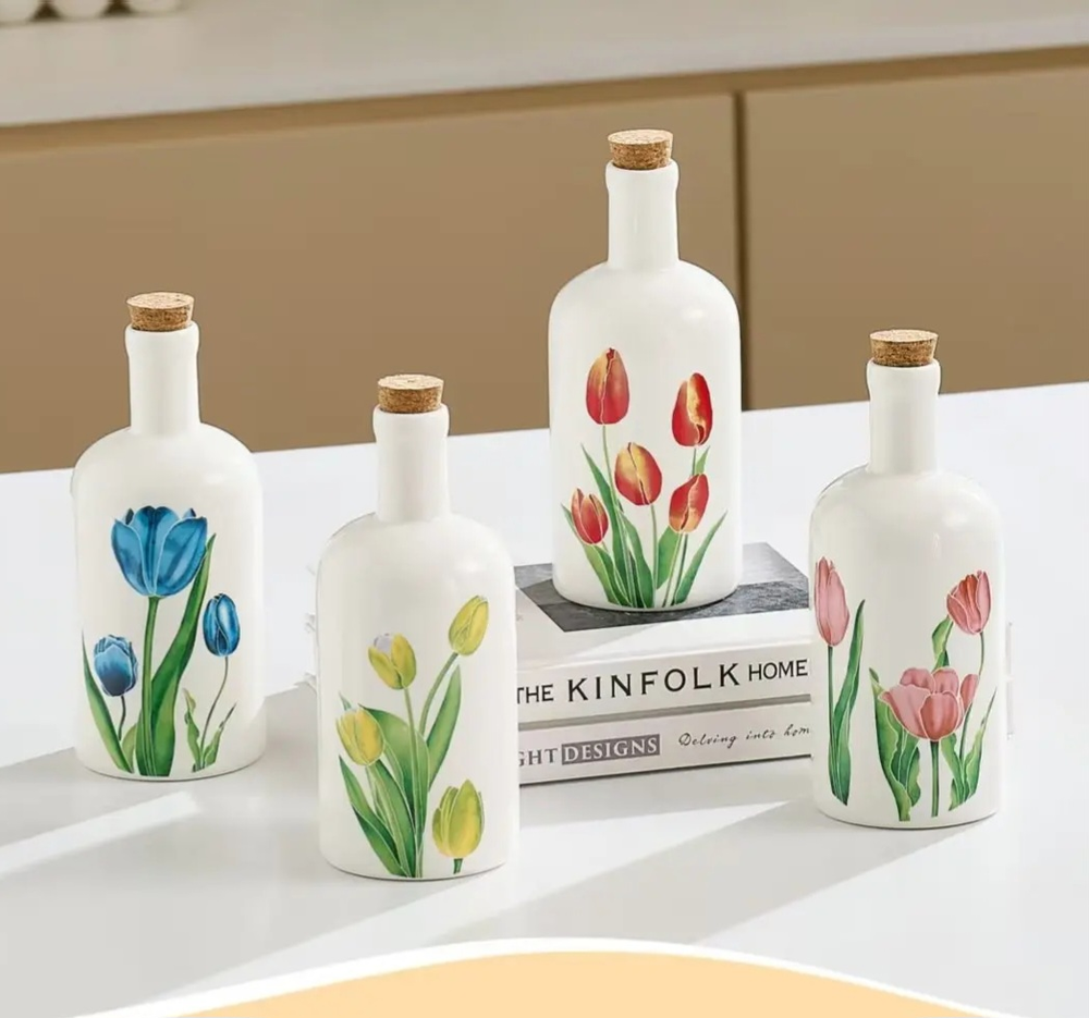 AA1389 BOTELLA CERAMICA CON FLOR