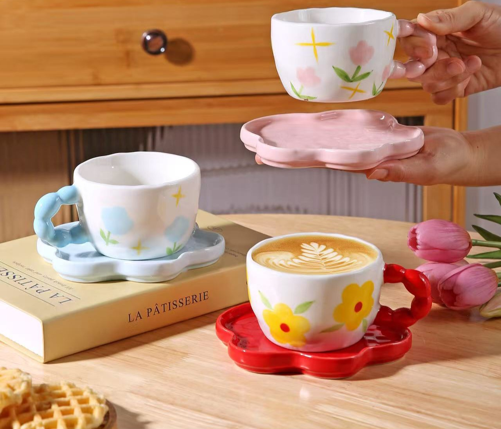 AA1422 TAZA CON PLATO CERAMICA CON FORMA DE FLOR