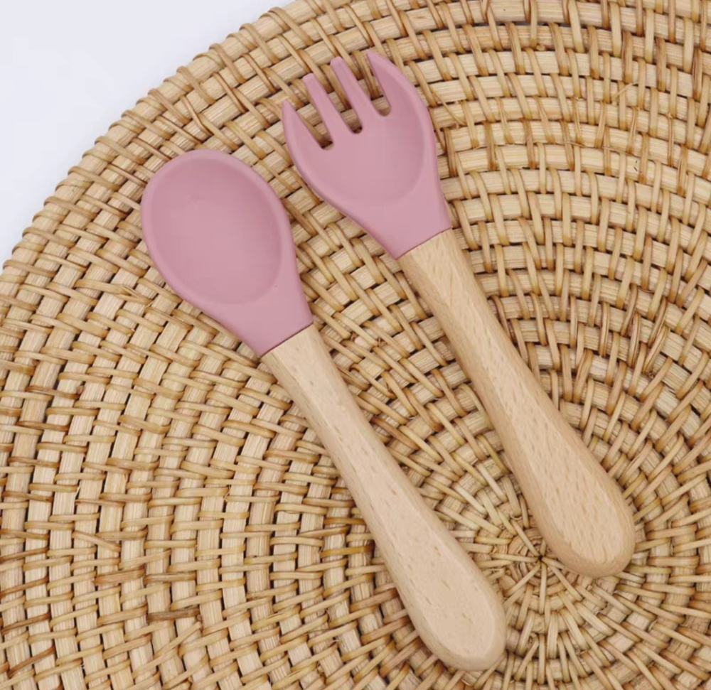 AA1658 TENEDOR Y CUCHARA SILICONA CON MANGO MADERA