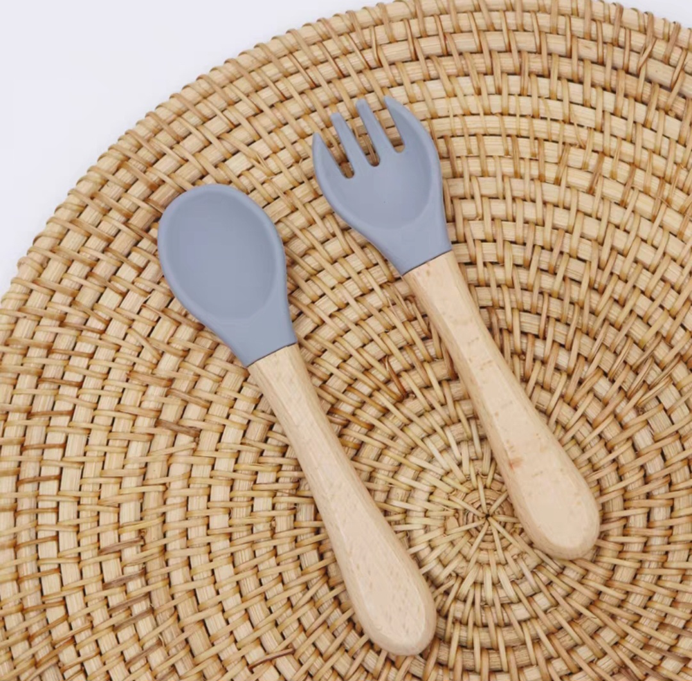 AA1660 TENEDOR Y CUCHARA SILICONA CON MANGO MADERA